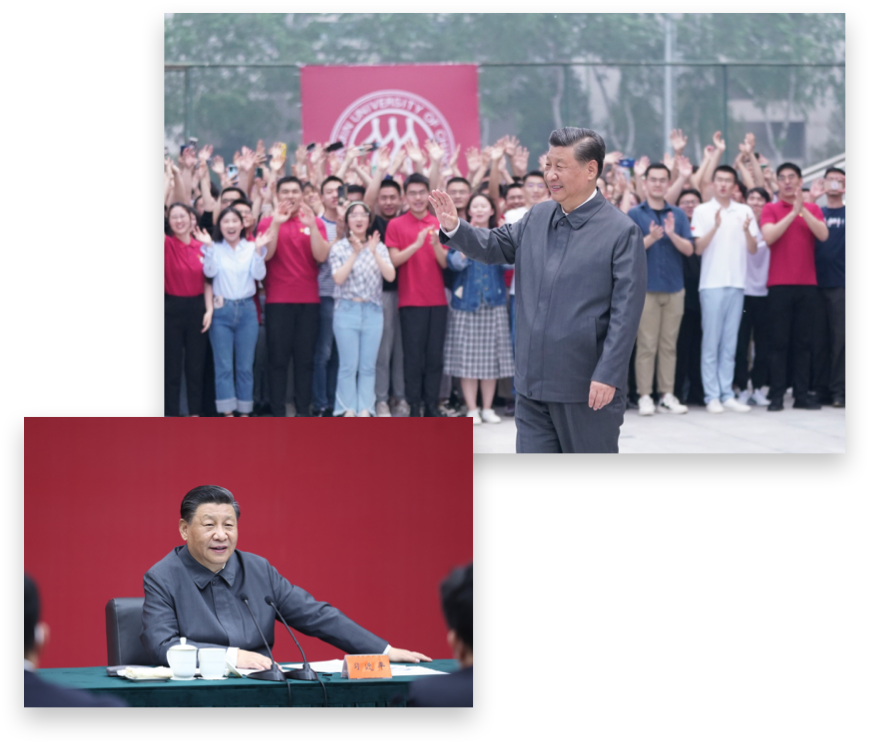 习近平同志曾于2005年、2006年、2009年、2012年、2022年先后五次到学校出席活动、视察工作。进入新时代,2017年,习近平总书记致信祝贺学校建校80周年,充分肯定学校的办学成绩,明确指出中国人民大学在“我国人文社会科学领域独树一帜”,并殷切希望学校“围绕解决好为谁培养人、培养什么样的人、怎样培养人这个根本问题,坚持立德树人,遵循教育规律,弘扬优良传统,扎根中国大地办大学,努力建设世界一流大学和一流学科”。2022年4月25日,习近平总书记专程到学校考察调研并发表重要讲话,他指出,中国人民大学在抗日烽火中诞生,在党的关怀下发展壮大,具有光荣的革命传统和鲜明的红色基因,始终不变的是“为党育人、为国育才”,展现了“党办的大学让党放心、人民的大学不负人民”的精神品格,他勉励学校坚持党的领导,坚持马克思主义指导地位,坚持为党和人民事业服务,落实立德树人根本任务,传承红色基因,扎根中国大地办大学,走出一条建设中国特色、世界一流大学的新路。